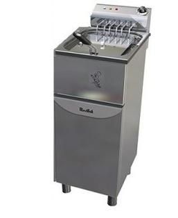 CARACTERÍSTICAS PRINCIPALES • Construida totalmente en acero inoxidable AISI 304 (18/10) • Cuba interior embutida de AISI 304, sin ángulos y con las marcas de MÁX-MÍN del nivel de aceite • Cabezal eléctrico extraíble para facilitar su limpieza • Termostato de trabajo regulable hasta 200°C / 20 A • Termostato de seguridad con rearme manual 230°C • Resistencia blindada en acero inoxidable • Cesta reforzada en malla y varilla en acero inoxidable AISI 304 (18/10) • Patas antideslizantes